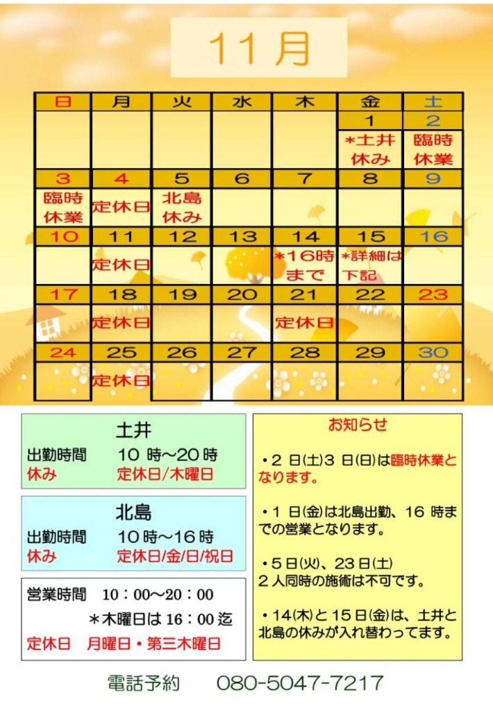【11月のシフト】
